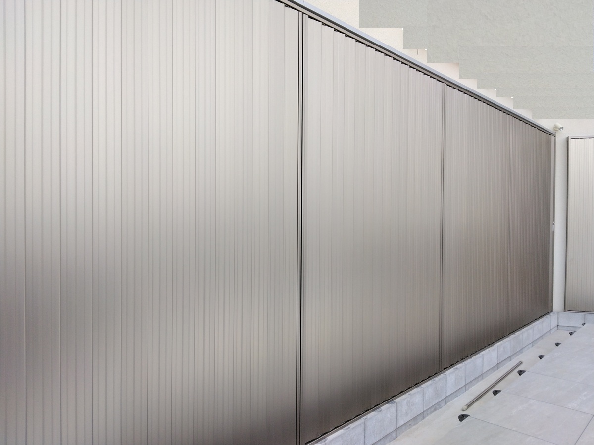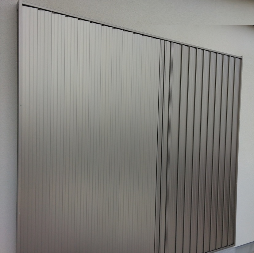 住宅大開口窓に、横引きシャッター後付けしました。台風、暴風、防犯、採光通風機能付きスライドシャッターを施工